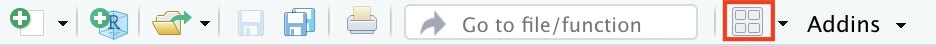paneについては一時的に縮小や拡大が可能であり,Figure 1.3 の赤で囲まれた枠でpaneの設定ができる.左上のEdit \(\rightarrow\) Preferences… \(\rightarrow\) Pane Layoutでも細かな設定が可能である.筆者は赤で囲まれた枠から「Console on Right」を選択し,右上にConsole paneが表示されるように設定している.